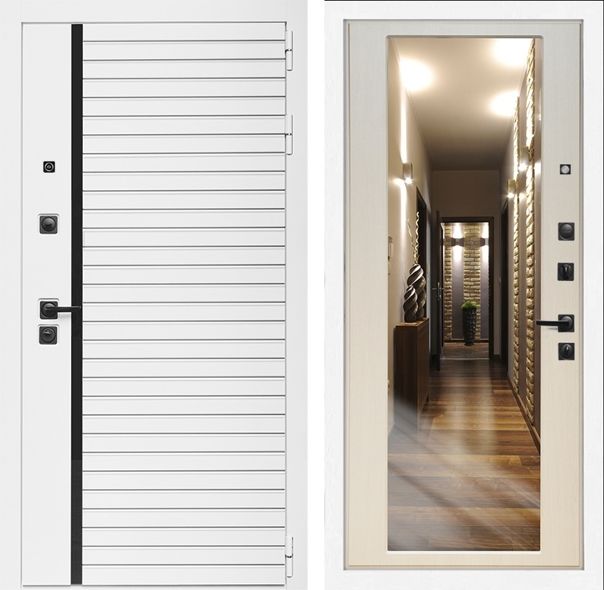 Входная дверь Интеко АГАТ БелаяБелая Беленый дуб - с зеркалом