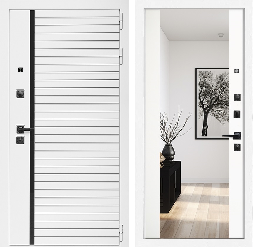 Входная дверь Интеко АГАТ БелаяБелая сб-16 Белый мат - с зеркалом