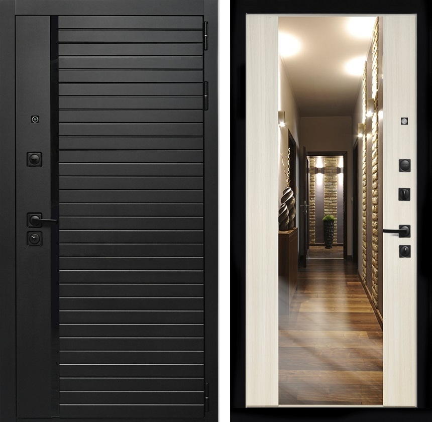 Входная дверь Интеко Агат сб-16 Сандал белый - с зеркалом