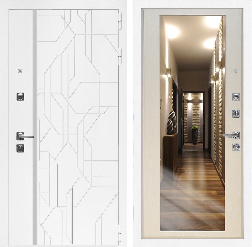 Входная дверь Интеко Верона Белый мат Беленый дуб - с зеркалом