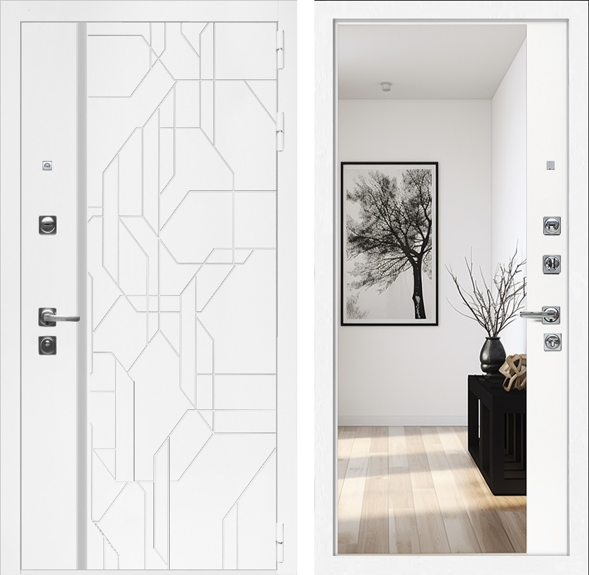 Входная дверь Интеко Верона Белый мат - с зеркалом панорама