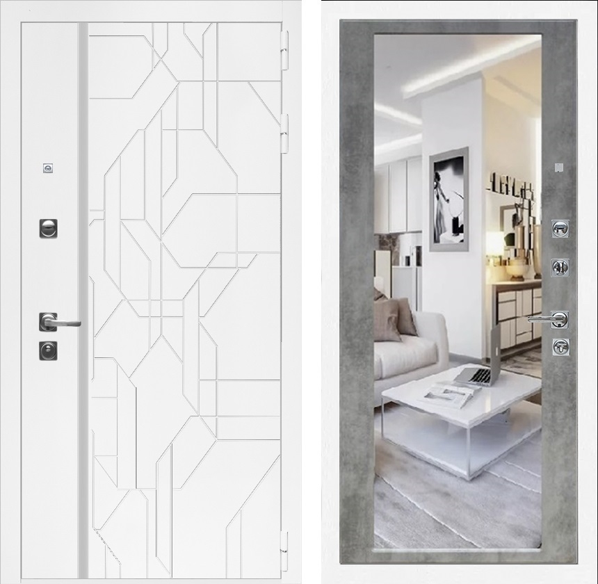 Входная дверь Интеко Верона Белый мат Бетон светлый - с зеркалом