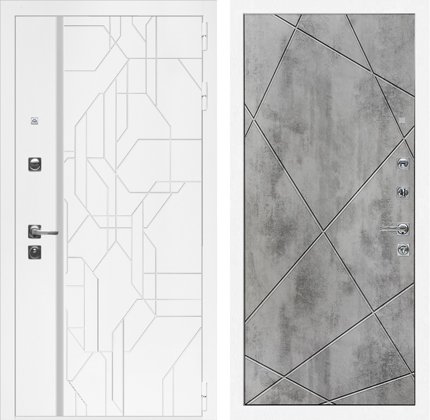 Входная дверь Интеко Верона Белый мат Лучи Бетон светлый