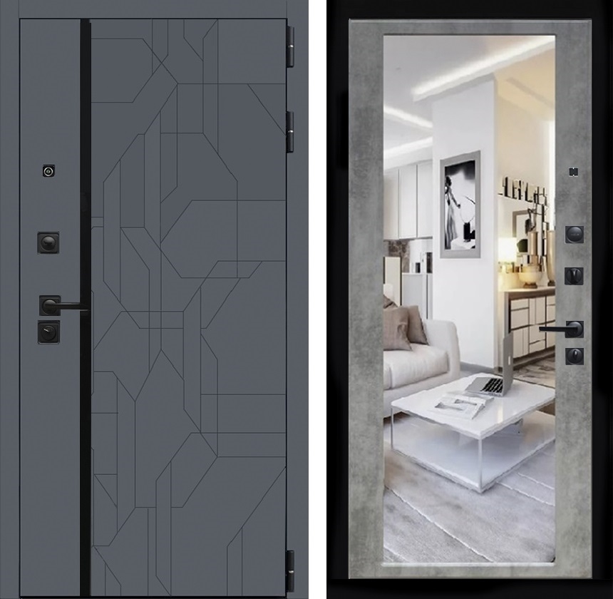 Входная дверь Интеко Верона Бетон светлый - с зеркалом