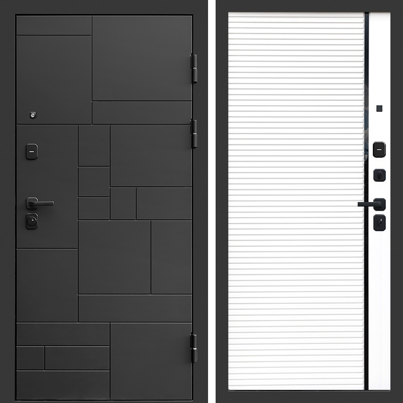 Входная стальная дверь Квадро фл-248 Белый матовый, черная вставка