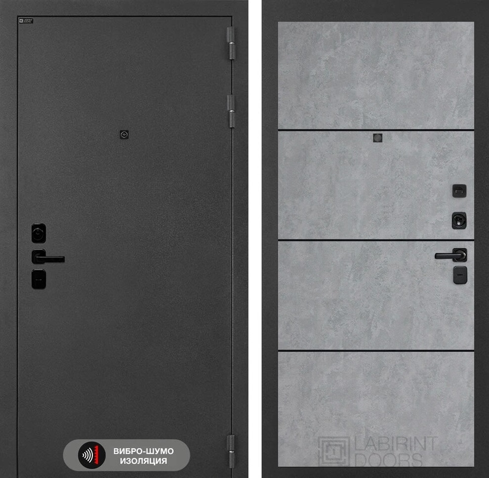 Входная стальная дверь Лабиринт ACUSTIC 25 - Бетон светлый, черный молдинг