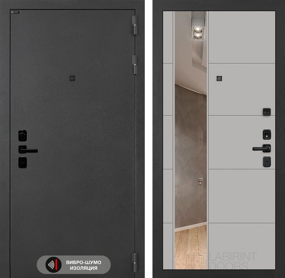 Входная стальная дверь Лабиринт ACUSTIC с Зеркалом 19 - Грей софт