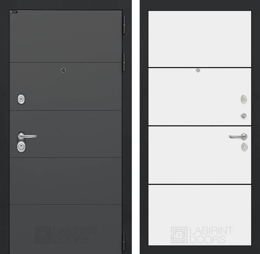 Входная стальная дверь Лабиринт ART графит 25 - Белый софт, черный молдингИ