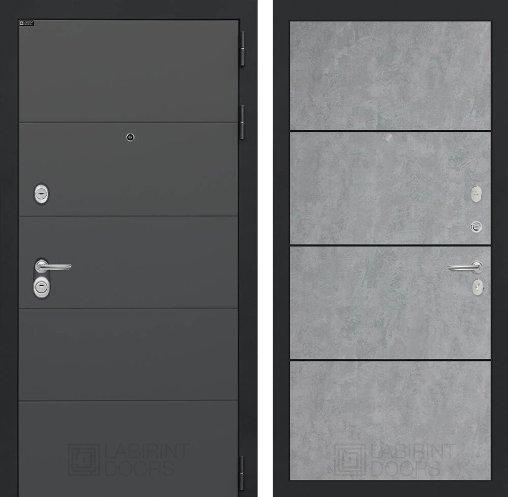 Входная стальная дверь Лабиринт ART графит 25 - Бетон светлый, черный молдинг