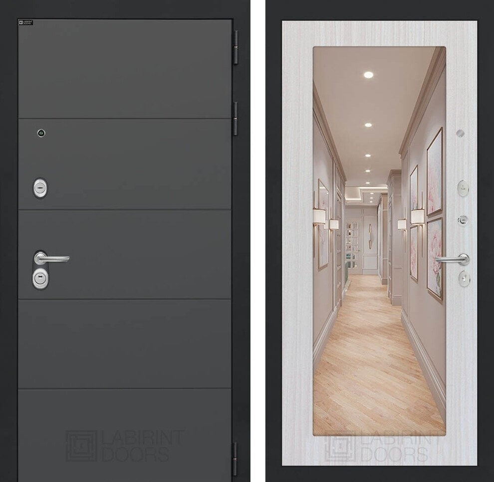 Входная стальная дверь Лабиринт ART графит с Зеркалом 18 - Сандал белый