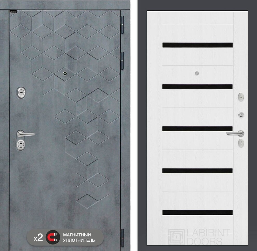 Входная стальная дверь Лабиринт Бетон 01 - Белое дерево, стекло черное