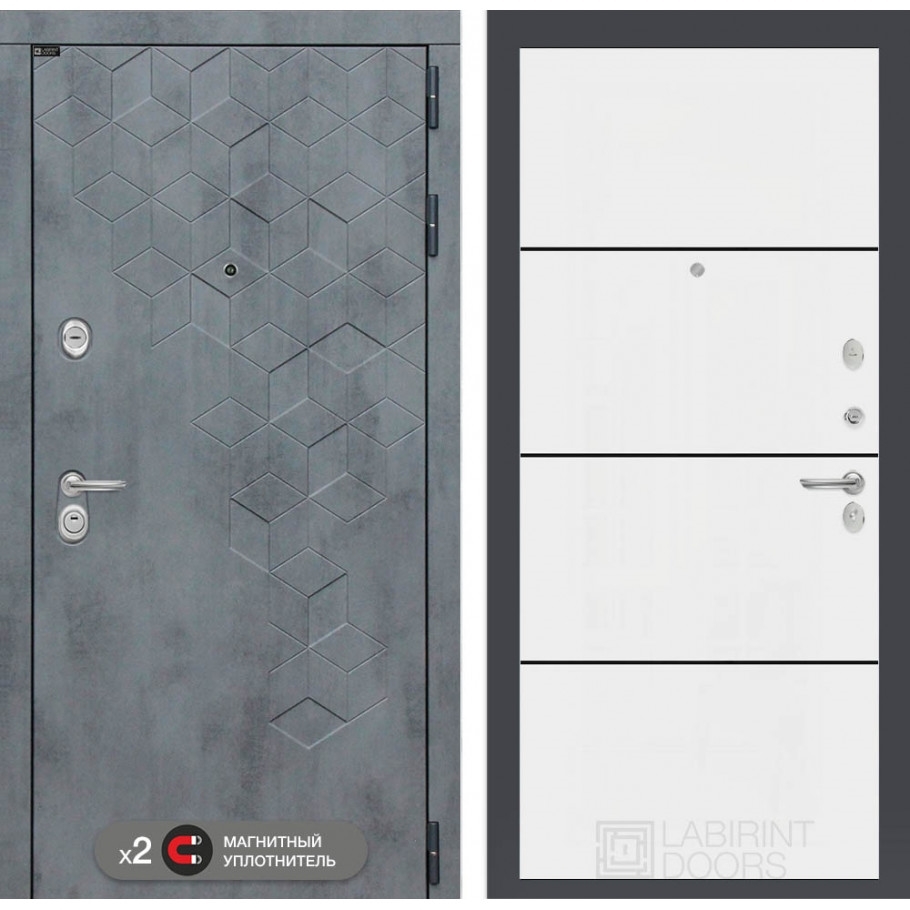 Входная стальная дверь Лабиринт Бетон 25 - Белый софт, черный молдинг