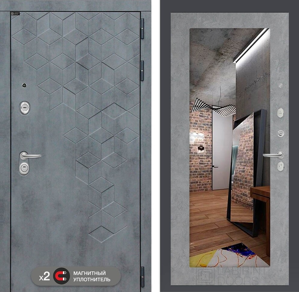 Входная стальная дверь Лабиринт Бетон с зеркалом 18 - Бетон светлый