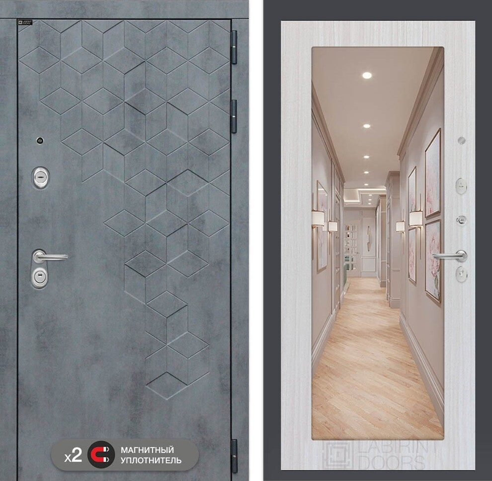 Входная стальная дверь Лабиринт Бетон с зеркалом 18 - Сандал белый
