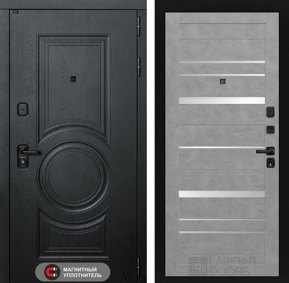 Входная стальная дверь Лабиринт GRAND 20 - Бетон светлый, зеркальные вставки