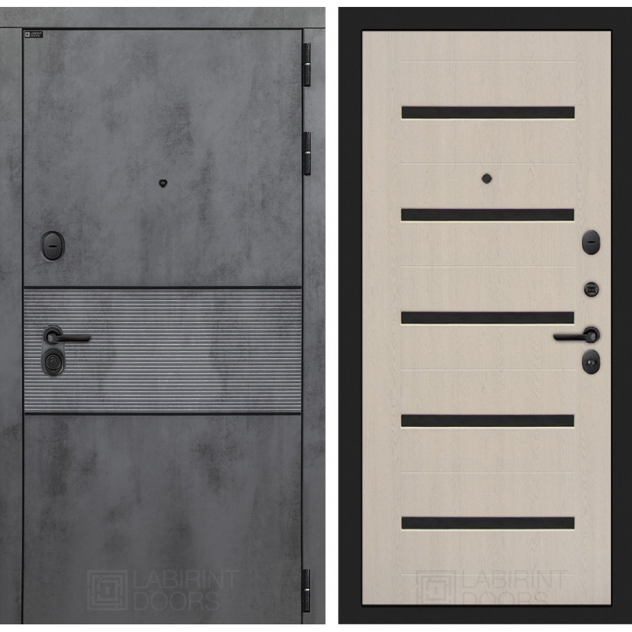 Входная стальная дверь Лабиринт INFINITY 01 - Беленый дуб, стекло черное