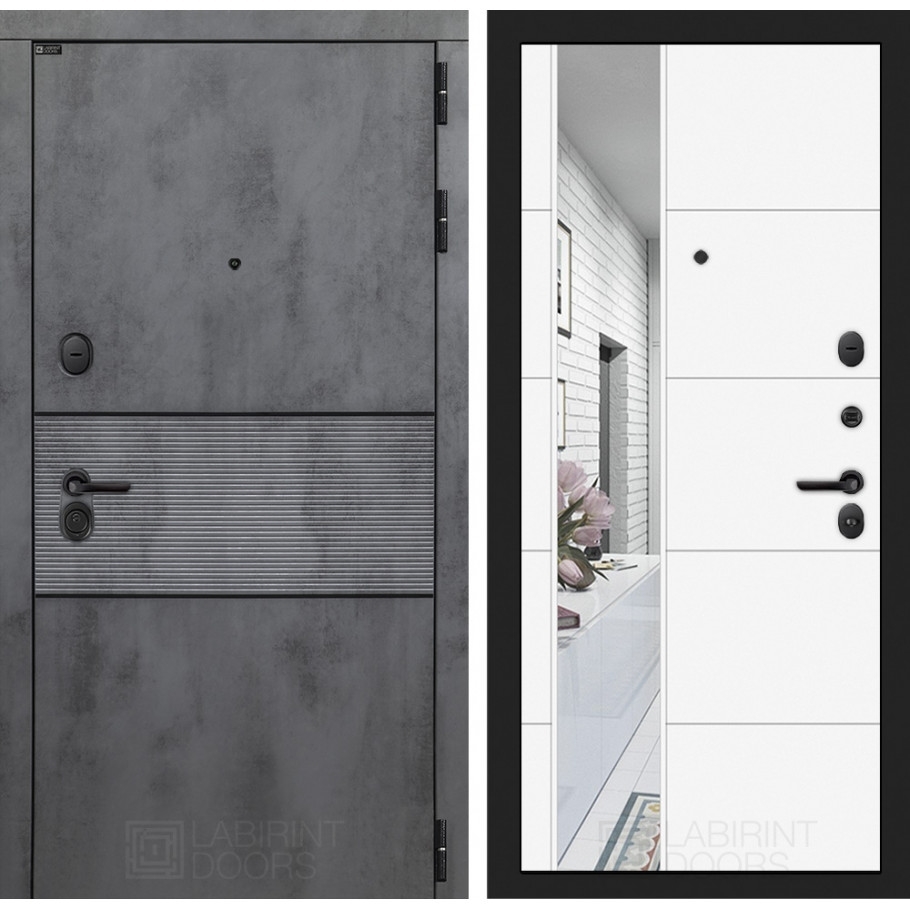 Входная стальная дверь Лабиринт INFINITY с Зеркалом 19 - Белый софт