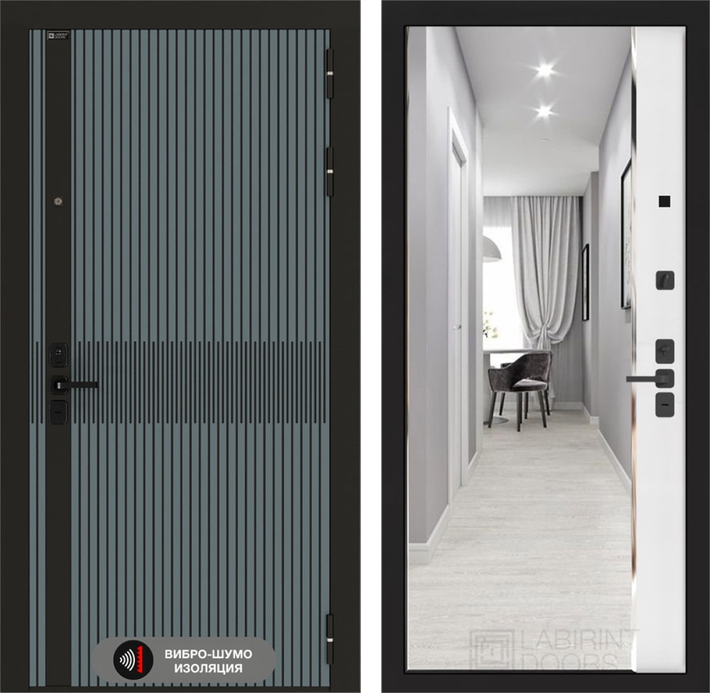Входная стальная дверь Лабиринт ISSIDA с зеркалом Панорама с тонировкой - Белый софт