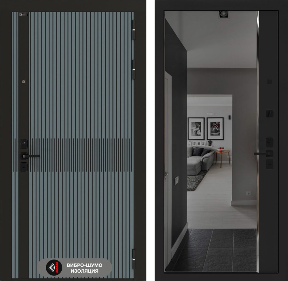 Входная стальная дверь Лабиринт ISSIDA с зеркалом Панорама с тонировкой - Черный кварц