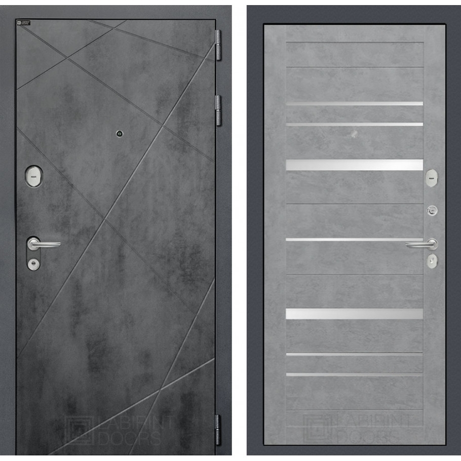 Входная стальная дверь Лабиринт LOFT 20 - Бетон светлый, зеркальные вставки