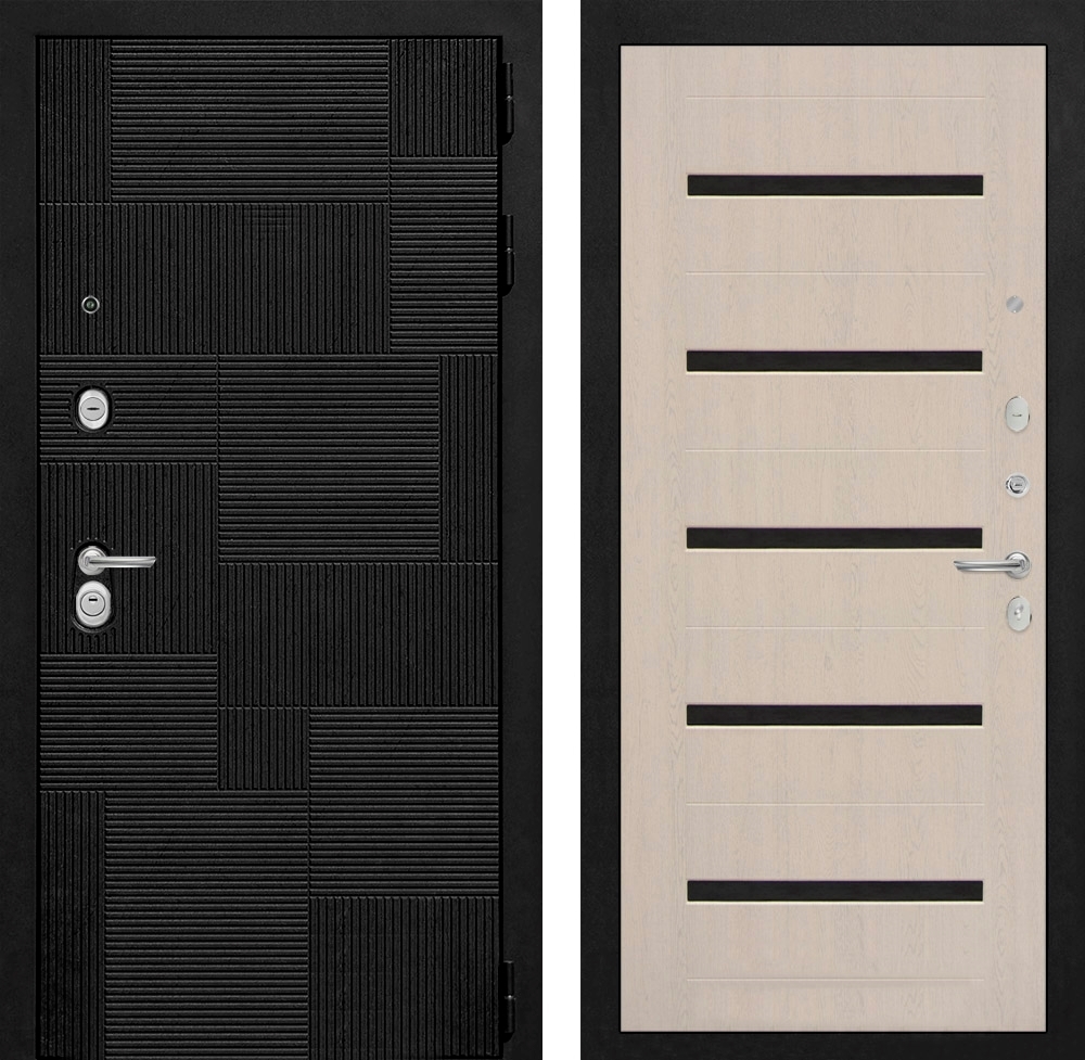 Входная стальная дверь Лабиринт Pazl-Пазл 01 - Беленый дуб, стекло черное