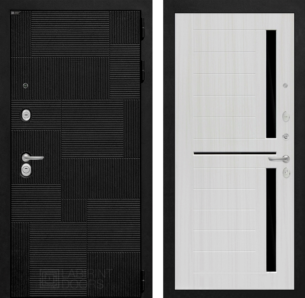 Входная стальная дверь Лабиринт Pazl-Пазл 02 - Сандал белый, стекло черное