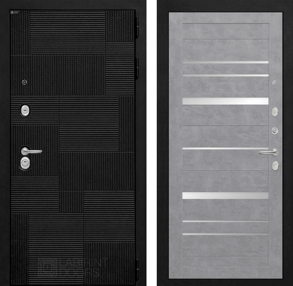 Входная стальная дверь Лабиринт Pazl-Пазл 20 - Бетон светлый, зеркальные вставки