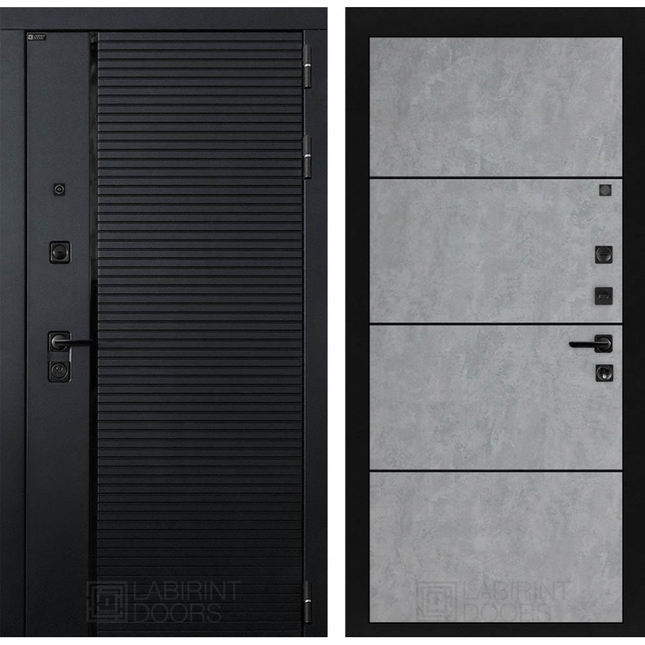 Входная стальная дверь Лабиринт PIANO 25 - Бетон светлый, черный молдинг