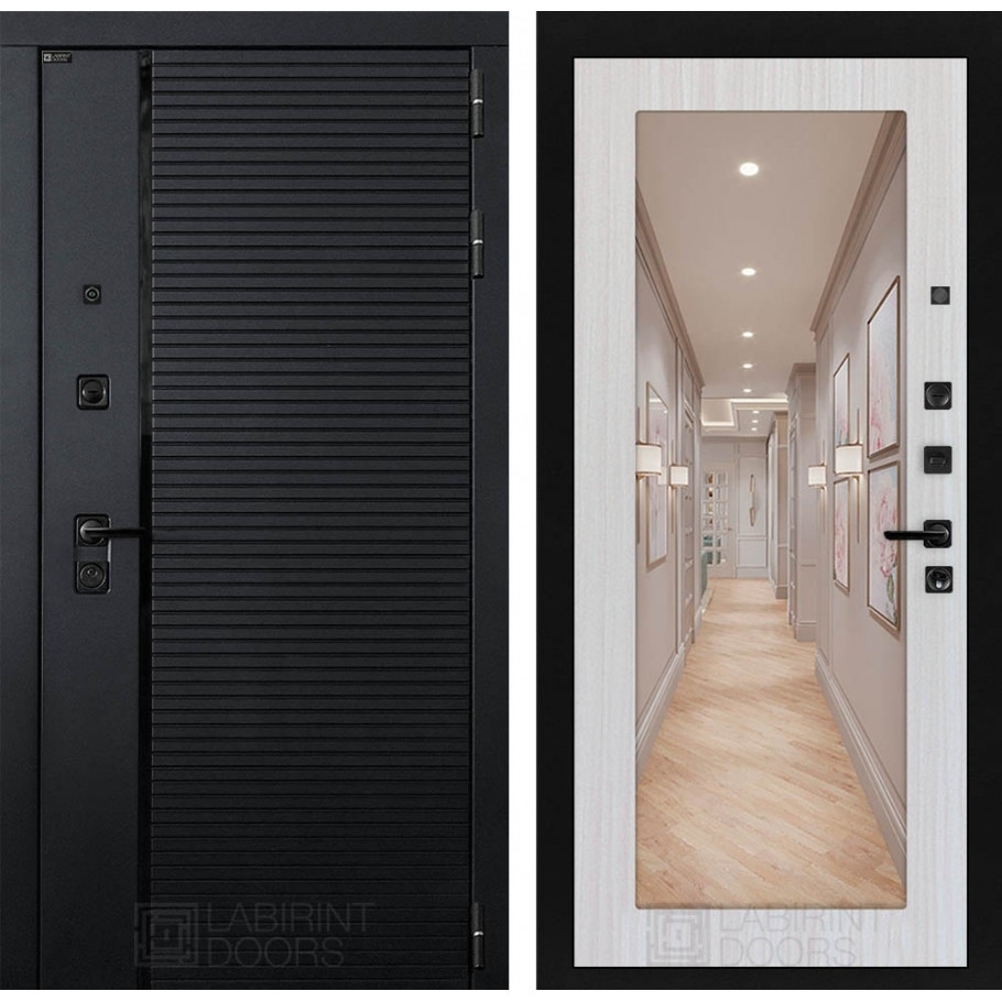 Входная стальная дверь Лабиринт PIANO с зеркалом 18 - Сандал белый