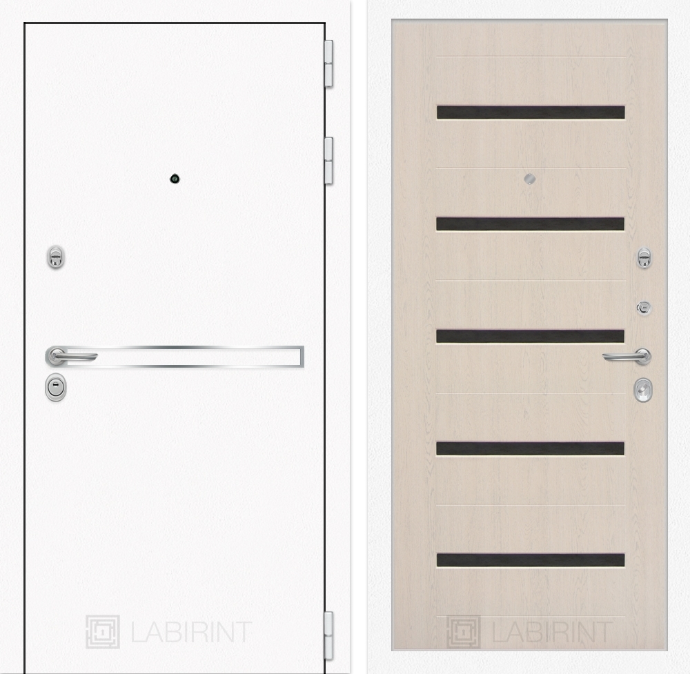 Входная стальная дверь Лабиринт Лайн WHITE 01 - Беленый дуб, стекло черное