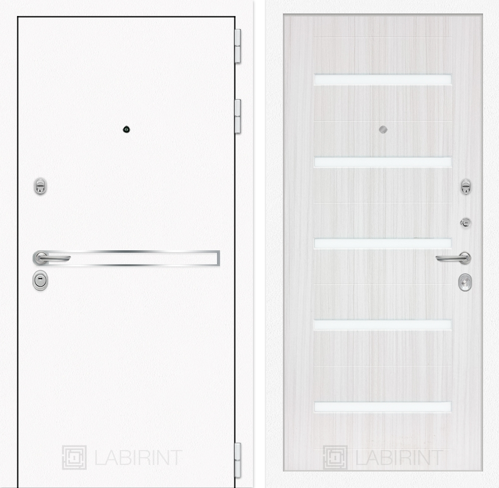 Входная стальная дверь Лабиринт Лайн WHITE 01 - Сандал белый, стекло белое