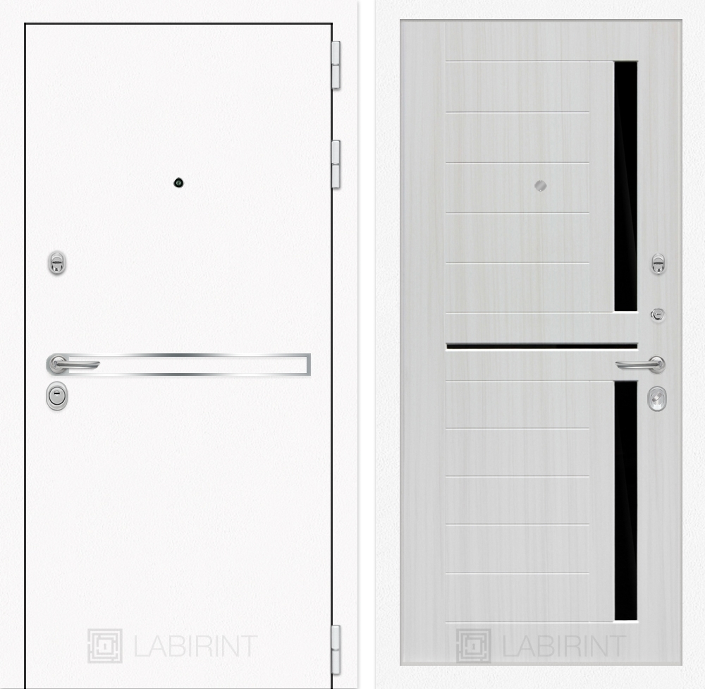 Входная стальная дверь Лабиринт Лайн WHITE 02 - Сандал белый, стекло черное