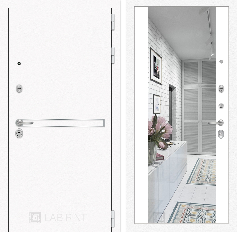 Входная стальная дверь Лабиринт Лайн WHITE с широким зеркалом - Белый soft