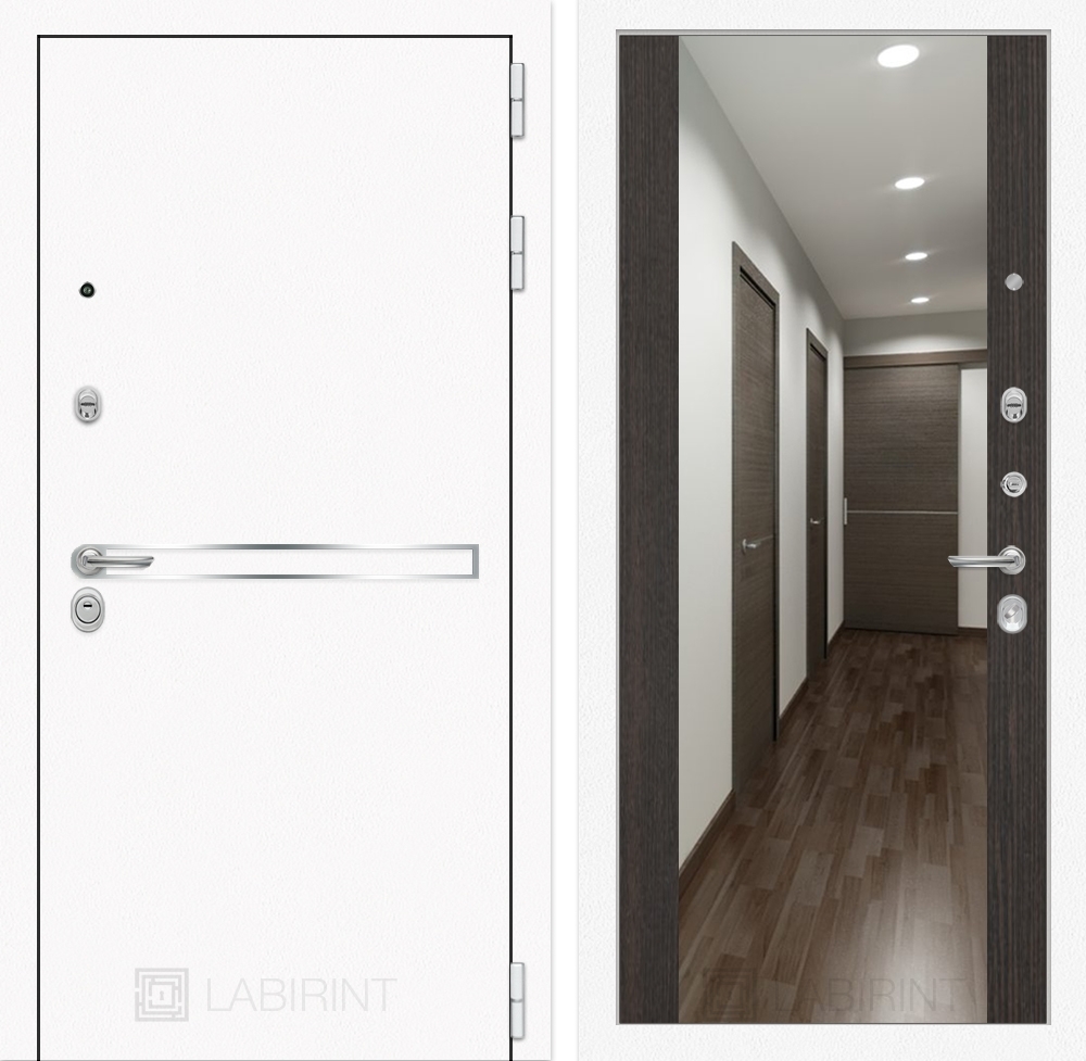Входная стальная дверь Лабиринт Лайн WHITE с широким зеркалом - Венге