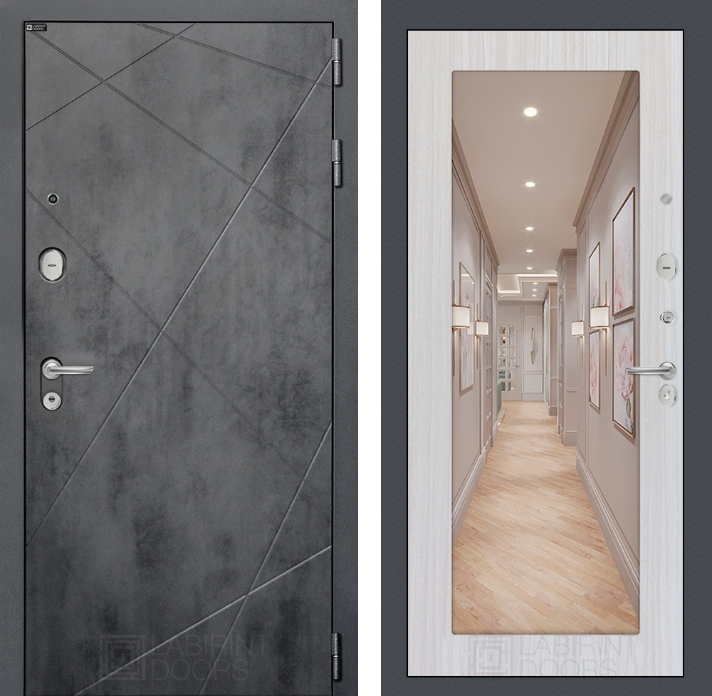 Входная стальная дверь Лабиринт LOFT с Зеркалом 18 - Сандал белый