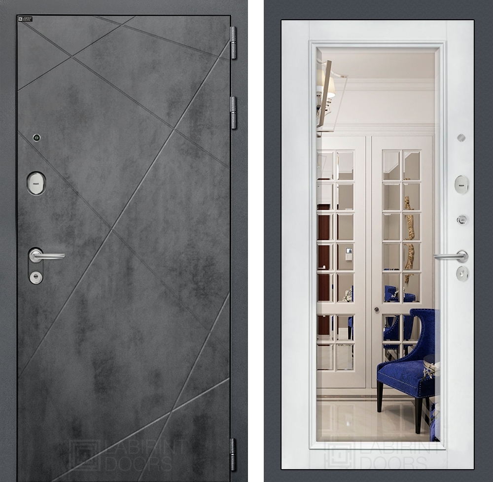 Входная стальная дверь Лабиринт LOFT с Зеркалом Фацет - Белый софт