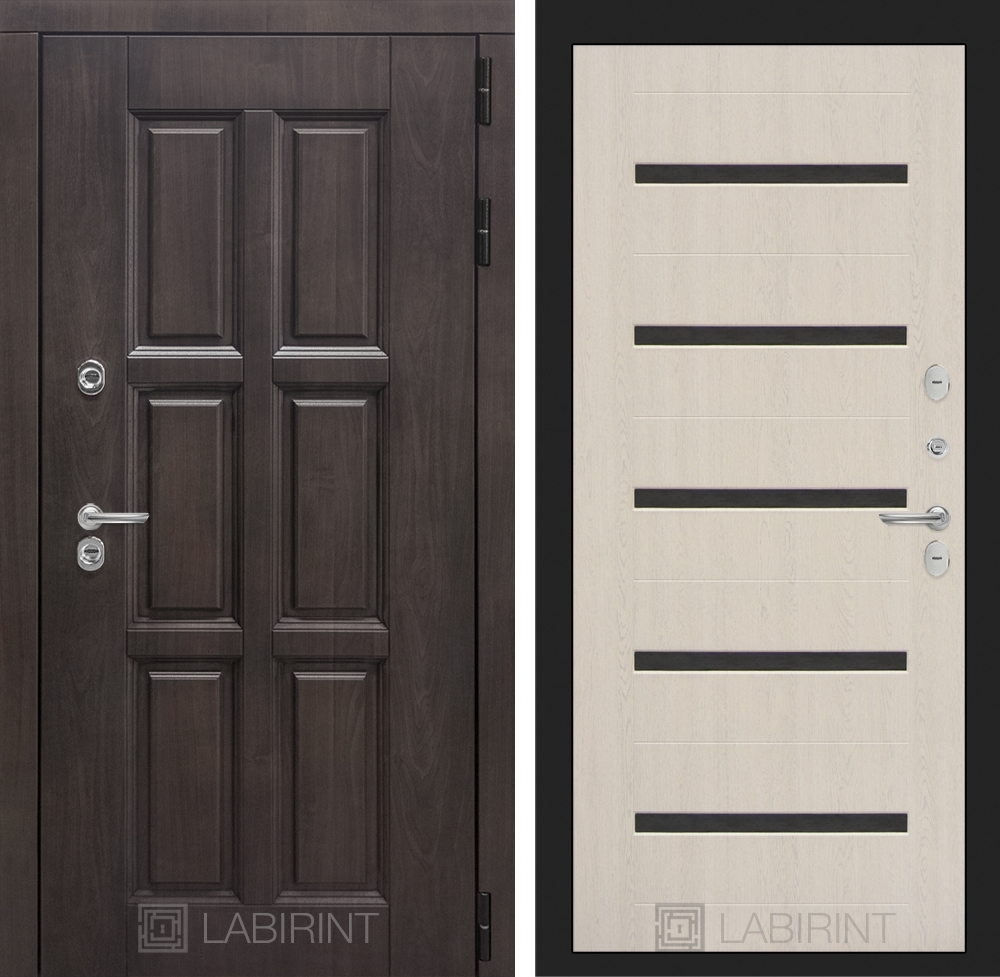 Входная стальная дверь с Терморазрывом Лабиринт Лондон 01 - Беленый дуб, стекло черное