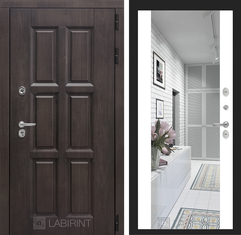 Входная стальная дверь с Терморазрывом Лабиринт Лондон с зеркалом Максимум - Белый софт