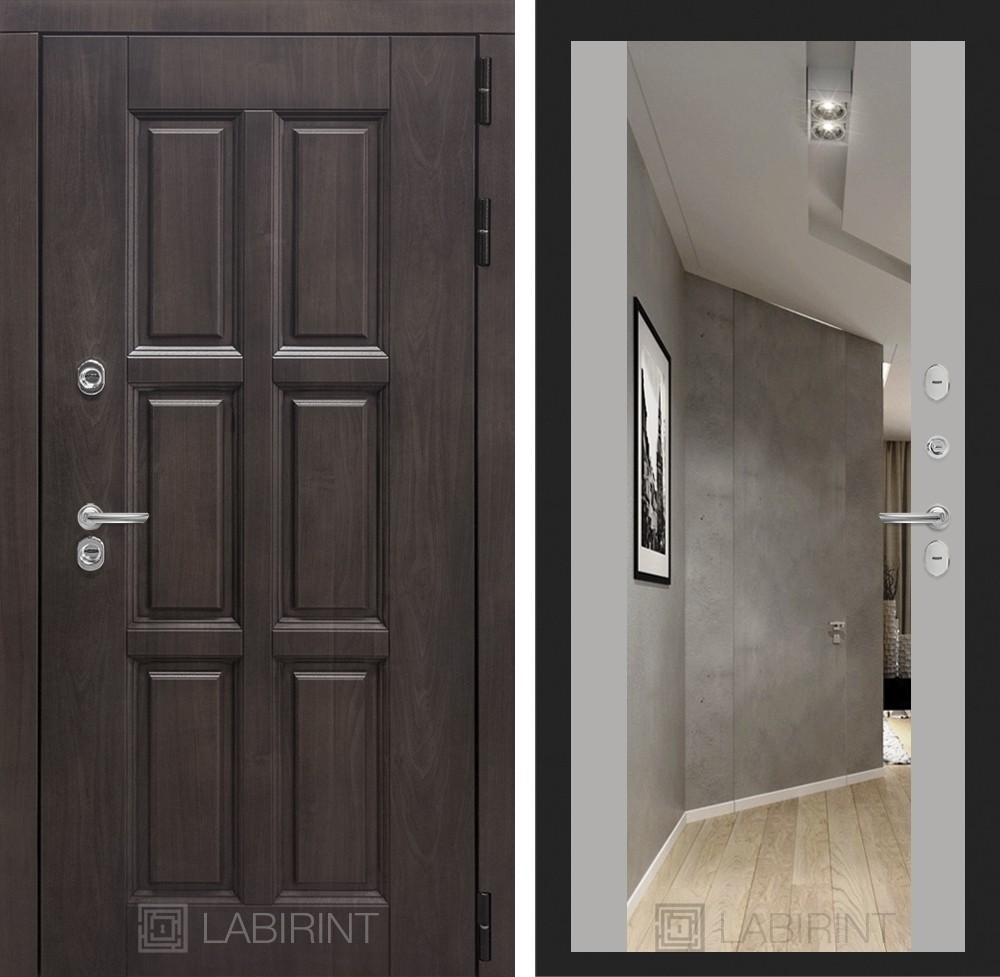 Входная стальная дверь с Терморазрывом Лабиринт Лондон с зеркалом Максимум - Грей софт