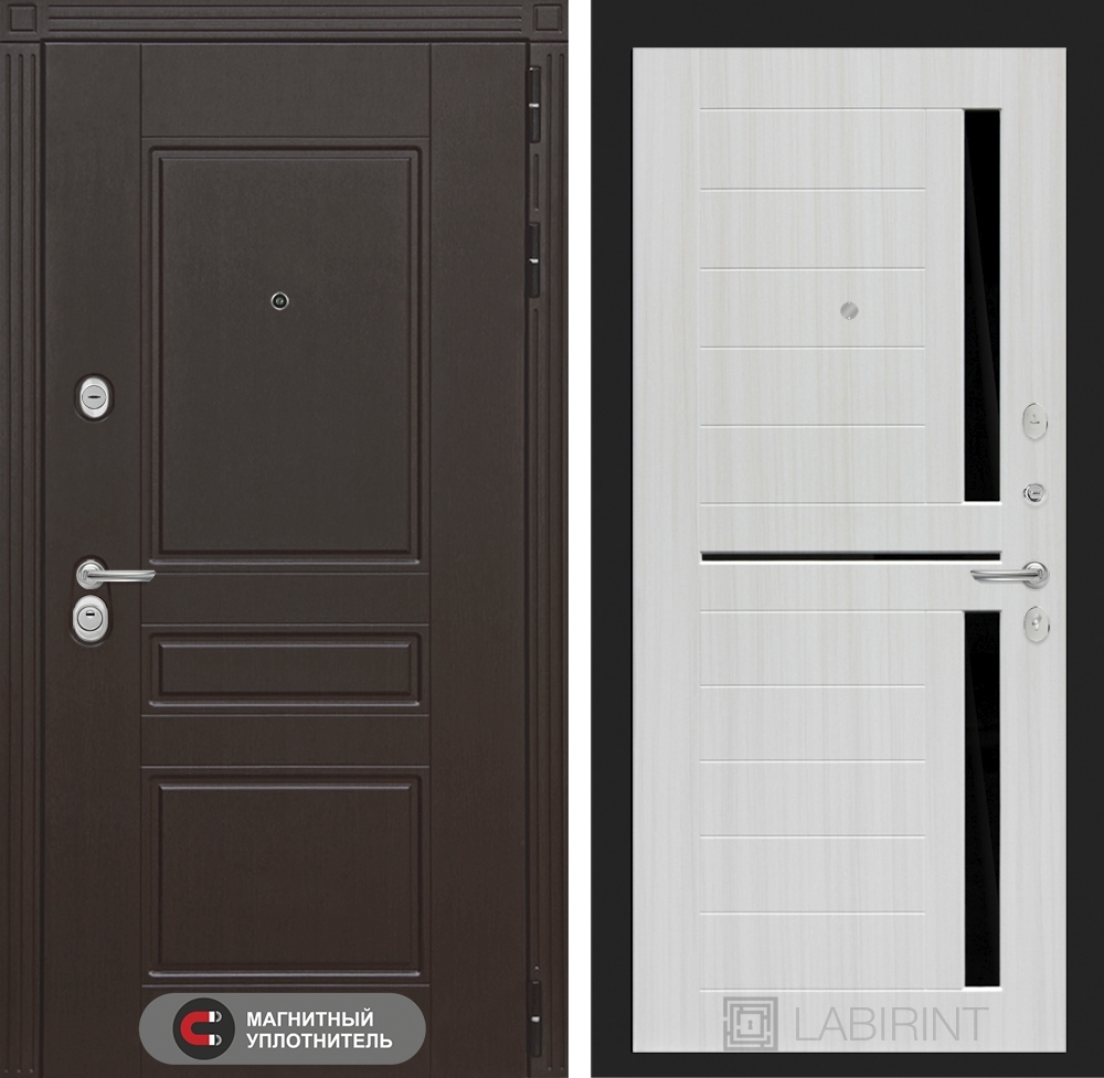 Входная стальная дверь Лабиринт Мегаполис 02 - Сандал белый, стекло черное