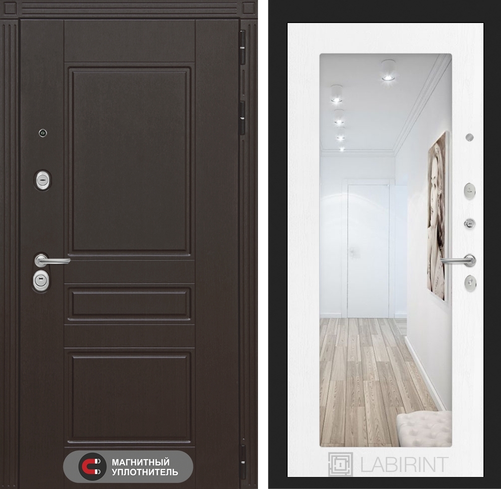 Входная стальная дверь Лабиринт Мегаполис с Зеркалом 18 - Белое дерево