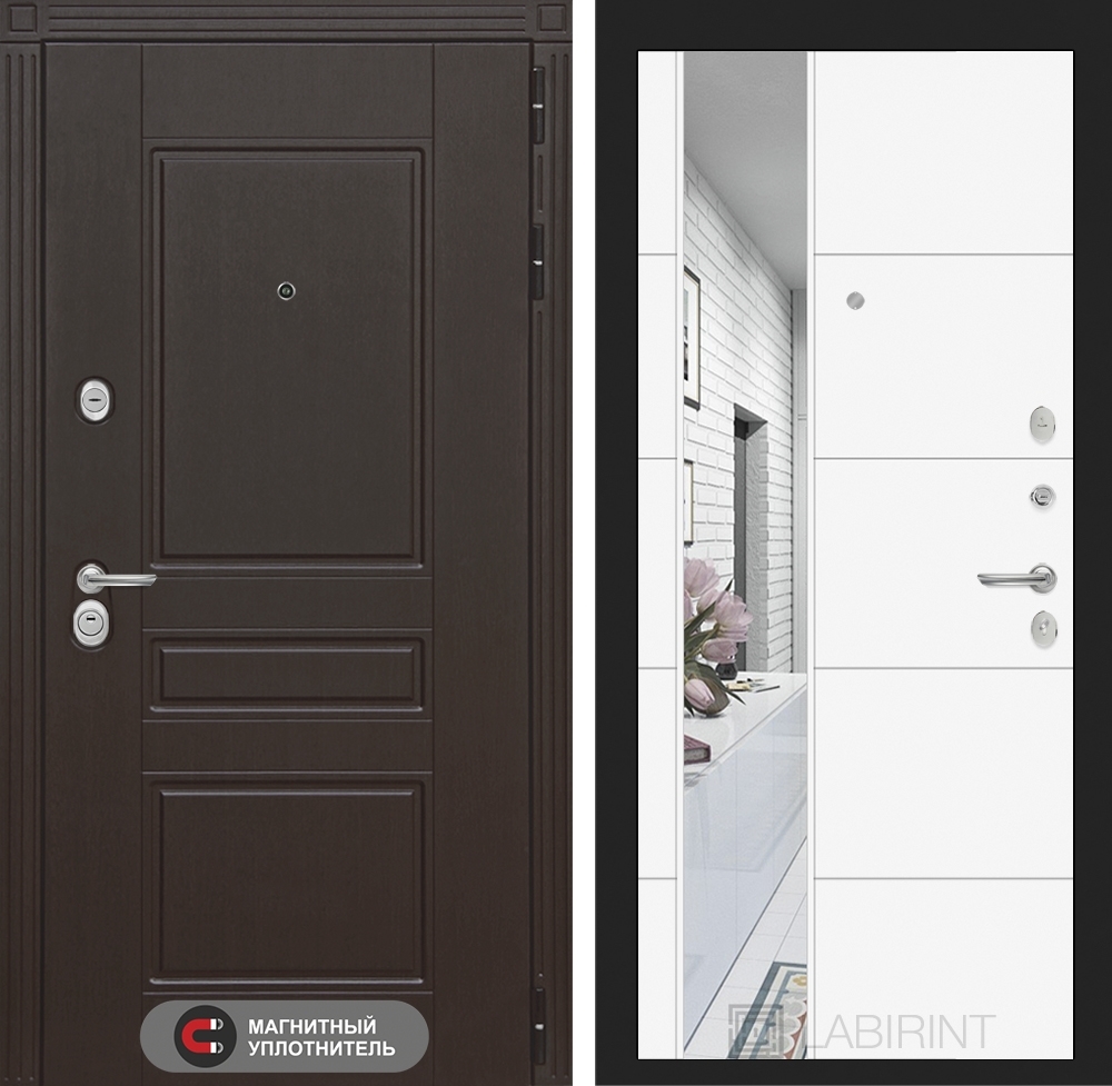 Входная стальная дверь Лабиринт Мегаполис с Зеркалом 19 - Белый софт