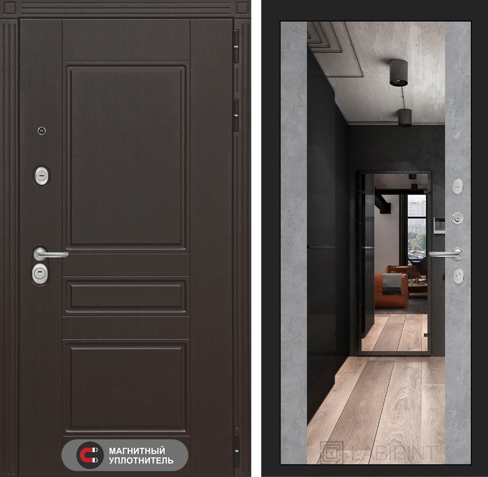 Входная стальная дверь Лабиринт Мегаполис с зеркалом Максимум - Бетон светлый
