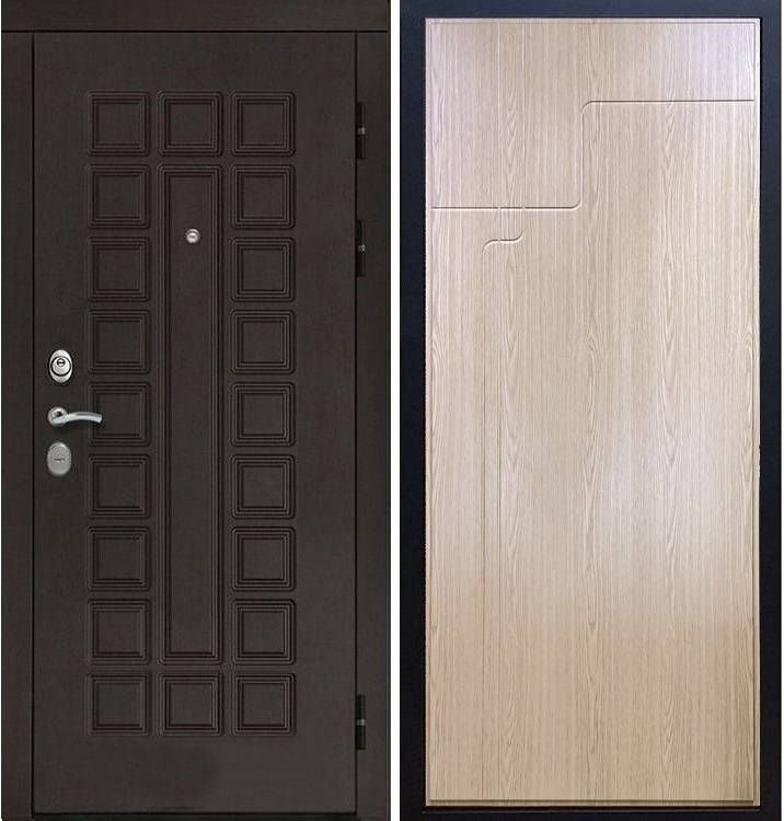 В комплект двери входит - Полотно + короб, декоративная панель с двух сторон, 2 - замка, личинка, ручки, декоративные накладки.