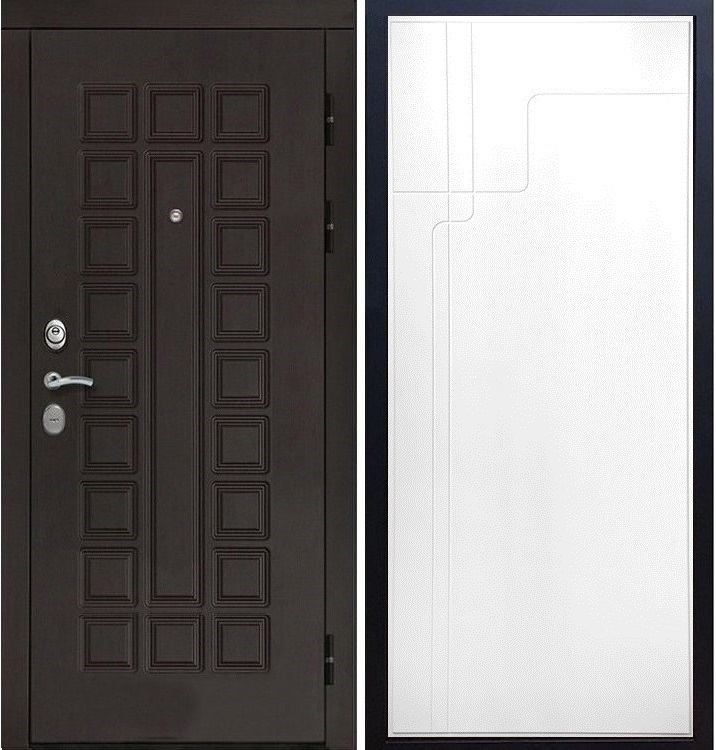 В комплект двери входит - Полотно + короб, декоративная панель с двух сторон, 2 - замка, личинка, ручки, декоративные накладки.