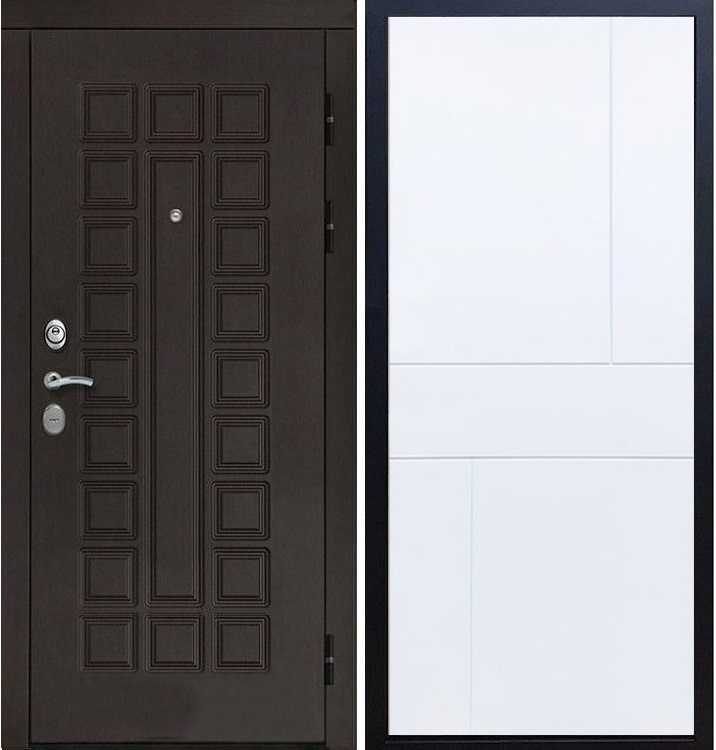 В комплект двери входит - Полотно + короб, декоративная панель с двух сторон, 2 - замка, личинка, ручки, декоративные накладки.