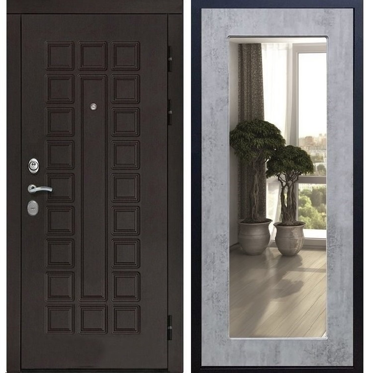 Входная стальная дверь Монолит Пастораль Бетон тёмный с Зеркалом