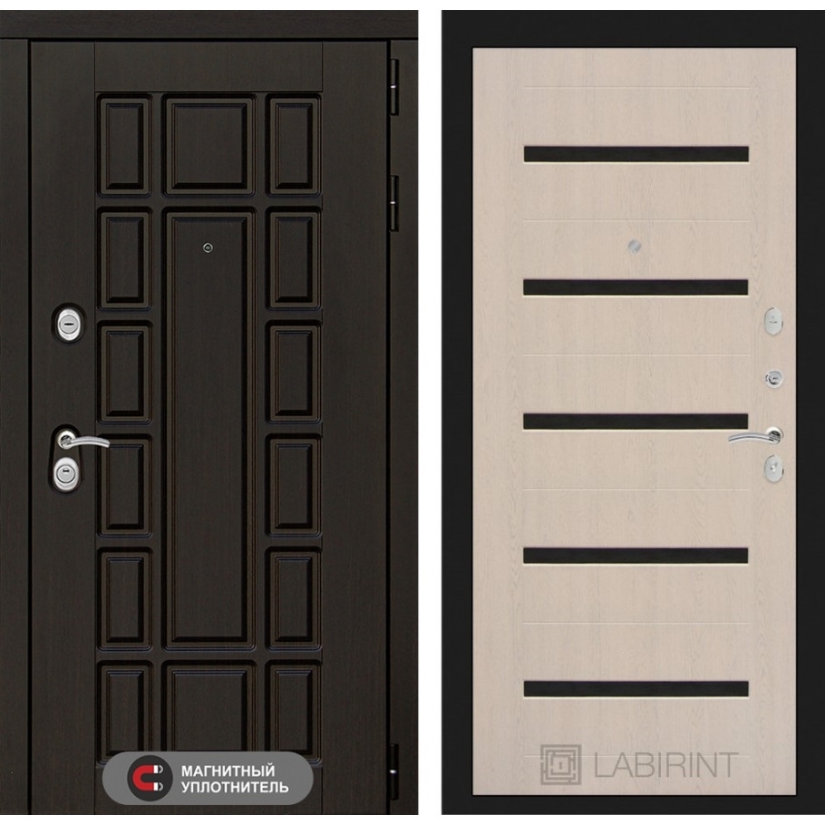 Входная стальная дверь Лабиринт Нью-Йорк 01 - Беленый дуб, стекло черное