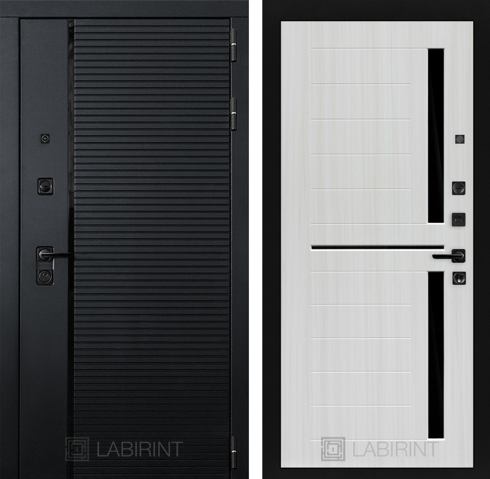 Входная стальная дверь Лабиринт PIANO 02 - Сандал белый, стекло черное