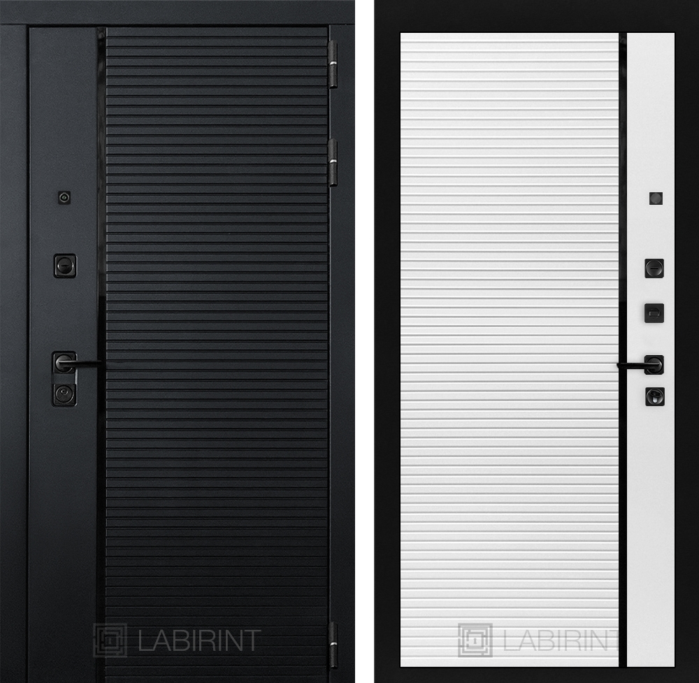 Входная стальная дверь Лабиринт PIANO 22 - Белый софт, черная вставка